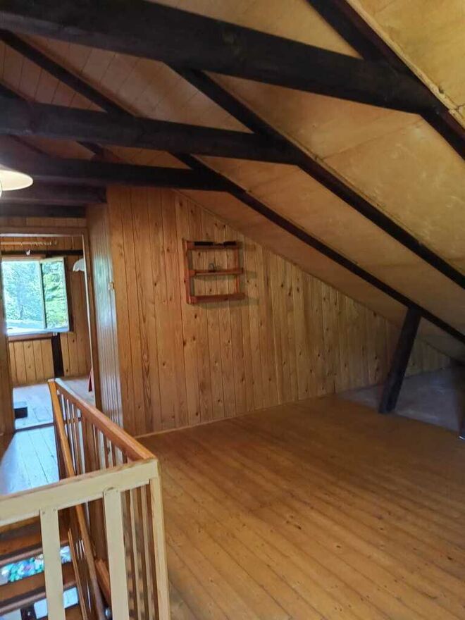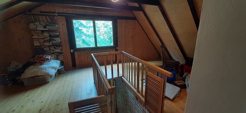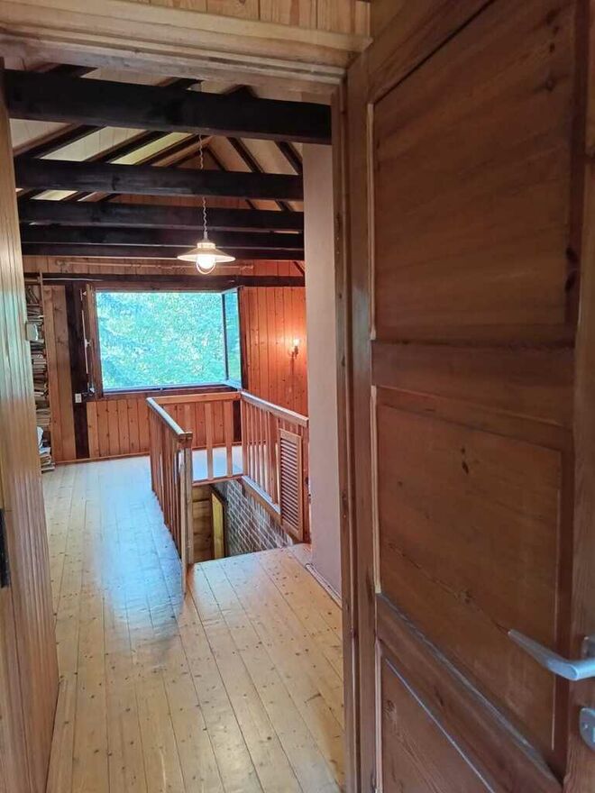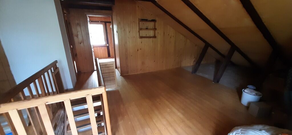 -Na piętro prowadzą drewniane schody, tam 2 sypialnie i otwarta