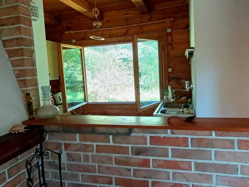 -W salonie kominek. Kuchnia z autentyczną kuchnią węglową.