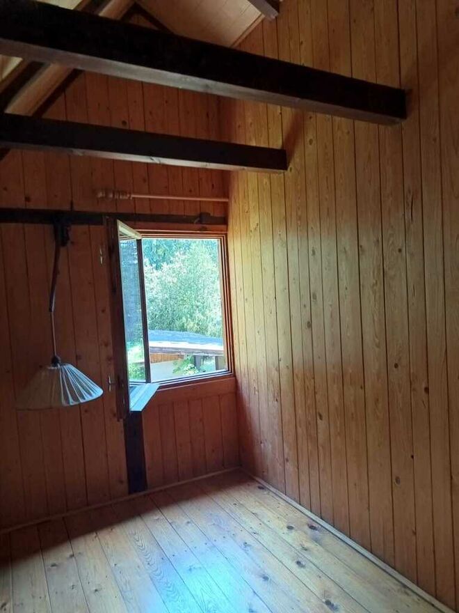 Miejscowość Łacha, gmina Serock.Drewniany dom letniskowy z możliwością mieszkania całorocznego z